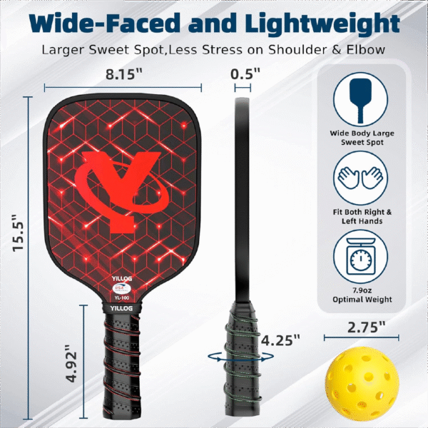 - Lightweight & Durable with Large Sweet Spot: Only 7.9oz weight reduces wrist/shoulder strain; 15.5″x8.15″ wide paddle face offers massive sweet spots to avoid misses. Edge guard protection boosts durability for long-term use.